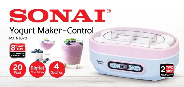 صانع الزبادي من سوناي بقوة 20 وات مزود ب 8 أكواب زجاجية تمكنك من صنع زبادي منزلي صحي بالأضافة الي